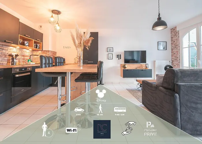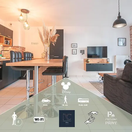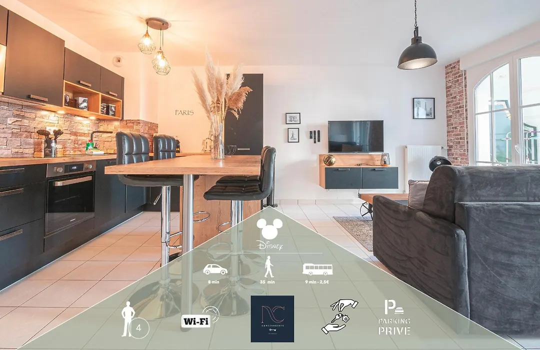 דירת דירות Disneyland-Paris 4 Pers, Wifi, Parking מציעה חדרים עם נופים של עיר ומיקום במרחק של 0.7 ק"מ בלבד על מרכז קניות ואלה וילג׳. ישנו מטבח המאובזר עם מיקרוגל ומקרר.